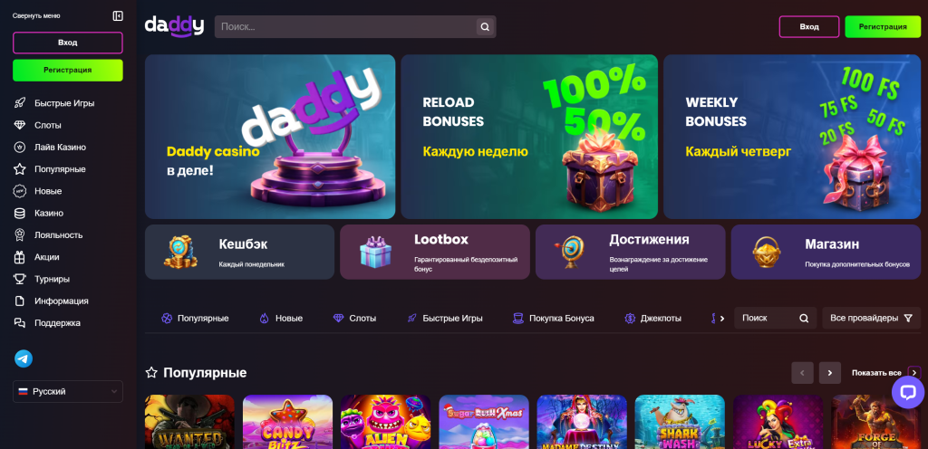 Лицензионное Daddy Casino – новая веб-площадка с большим выбором слотов. Веб-платформа работает с 2023 года. В виртуальном клубе могут играть пользователи из разных стран. Администрация Дэдди казино придерживается принципов безопасной и честной игры.
